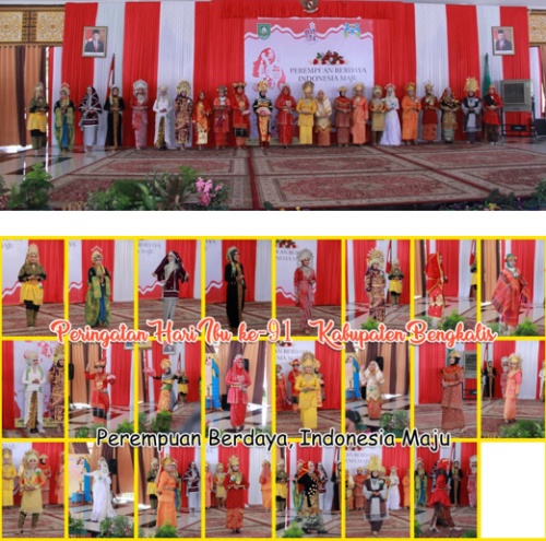 Dalam Peringatan Hari Ibu tersebut, dilakukan pemotongan tumpeng oleh Sekretaris Daerah (Sekda) Kabupaten Bengkalis, H Bustami HY. Usai pemotongan tumpeng, dilanjutkan dengan lomba fashion show pakaian adat seluruh Indonesia yang diikuti oleh 23 peserta dari Bengkalis.