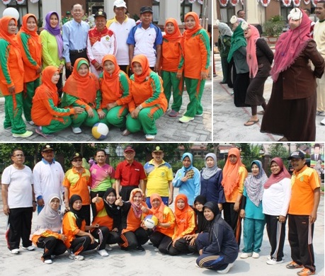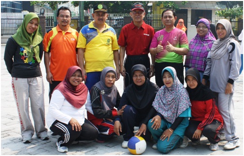 Tim Voly putri dari PA Pekanbaru, PA Bangkinang, PTA Pekabaru sedang foto persama dengan Pimpinan PTA Pekanbaru