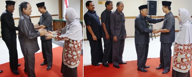 Pegawai PTA Pekanbaru bersalaman dengan Drs. Muchtarom, SH.,MH dan Dra. Hj. Siti Nurjannah Diaz, SH