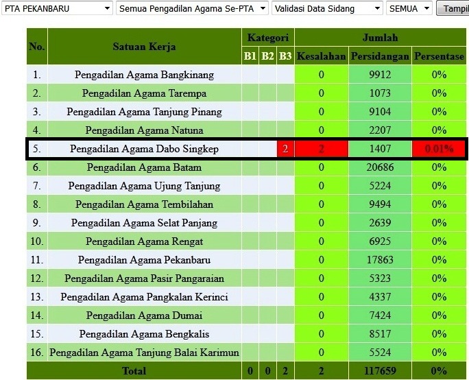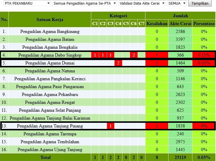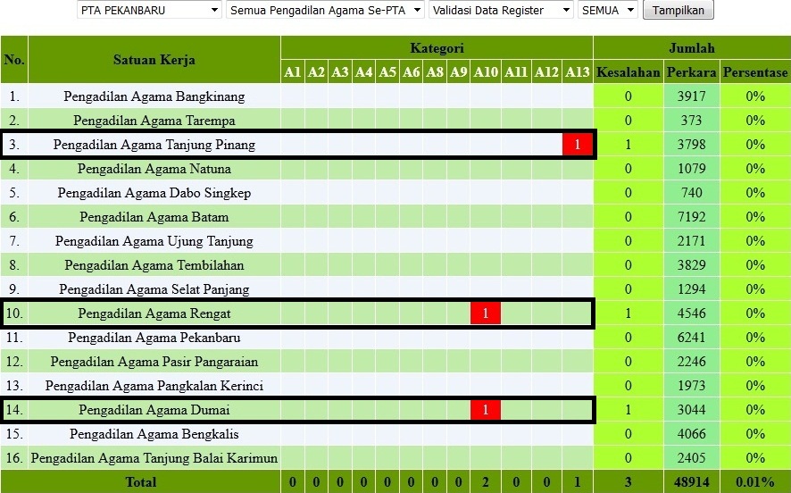 - PA Tanjung Pinang (memiliki 1 kesalahan)