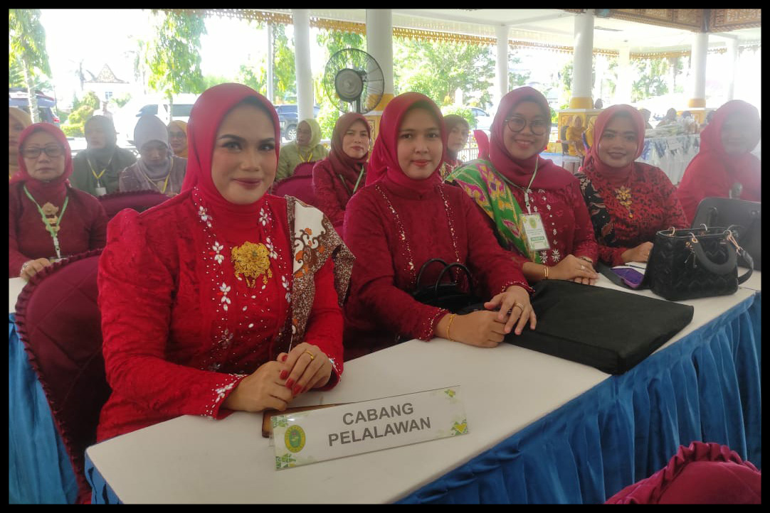 Ny. Kiki Handika Fuji Sunu, selaku Wakil Ketua Dharma Yuktikarini Cabang Pelalawan, memberikan kata Apresiasi yang penuh semangat atas kemenangan perwakilan Dharma Yuktikarini Cabang Pelalawan dan mengucapkan selamat hari Kartini untuk kita semua. (Mimi-PA.PKC)