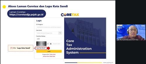 Kamis 11 Desember 2025, Pengadilan Tinggi Agama Pekanbaru bekerjasama dengan Kantor Wilayah Direktorat Jenderal Pajak Riau (Kanwil DJP Riau) menggelar Sosialisasi Sistem Coretax kepada para aparatur Pengadilan Agama sewilayah hukum PTA Pekanbaru. Sosialisasi ini diikuti oleh seluruh unsur pimpinan dan aparatur Pengadilan Agama sewilayah hukum PTA Pekanbaru secara daring. Hadir dari Kanwil DJP Riau adalah Penyuluh Pajak Ahli Pertama Puja Aldilla dan Tri Rizki Mefianto.