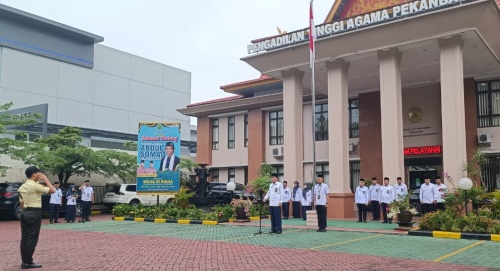 Bertindak sebagai pembina apel, Ketua PTA Pekanbaru, Dr. H. M. Sutomo, SH., MH, dalam amanatnya menyampaikan pentingnya menjaga kerapian, keseragaman, dan kekompakan sebagai faktor pendukung dalam pelaksanaan tugas pokok dan fungsi. Beliau juga menekankan agar kinerja yang telah baik selama ini dapat terus dipertahankan dan ditingkatkan ke arah yang lebih optimal.
